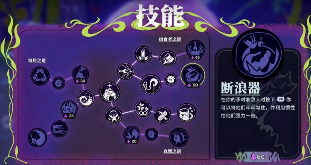 在遊戲中,甲殼系統是戰鬥的靈魂。寄居蟹以殼爲生很合理吧?所以蟹Bro就在海底,尋找各種垃圾作爲自己的新殼來戰鬥。你可以把甲殼理解爲《黑魂》中的盾牌——縮殼,也就是架盾,可以幫蟹Bro抵擋傷害。而這些垃圾又很容易損壞,所以遊戲鼓勵玩家多多換殼。