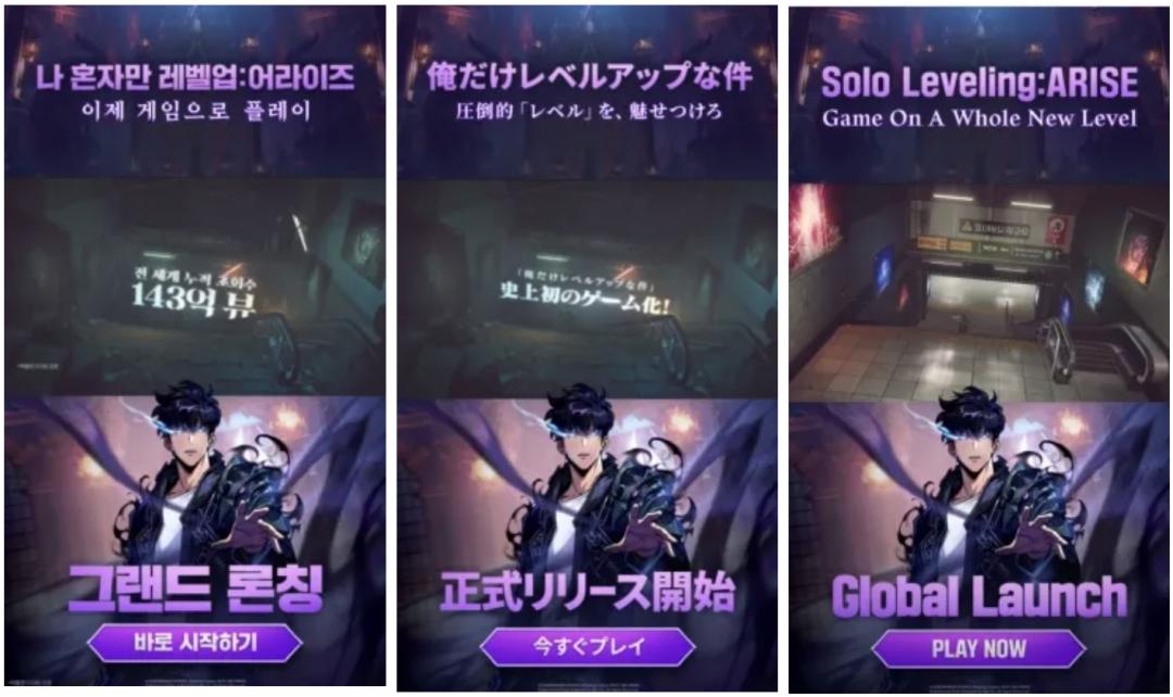 不過,面對不同地區市場,《我獨自升級:起立》部分素材嘗試做了更多差異化嘗試。我們篩選主要市場的投放素材,發現不同市場會出現一些本土獨有的素材內容。