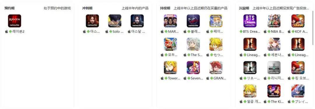 目前 Netmarble 已上線且持續投放的產品,仍以二次元類型爲主;還有一款新品處於預約期,爲 IP 續作《Raven 2》。