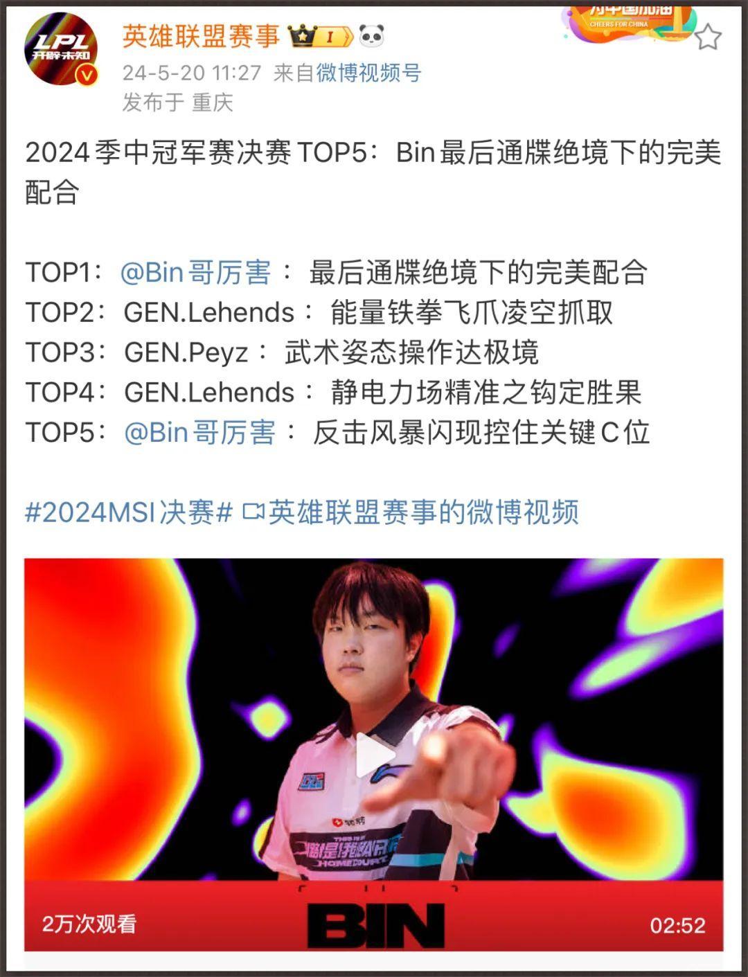 英雄聯盟賽事官方給出的決賽TOP5鏡頭: