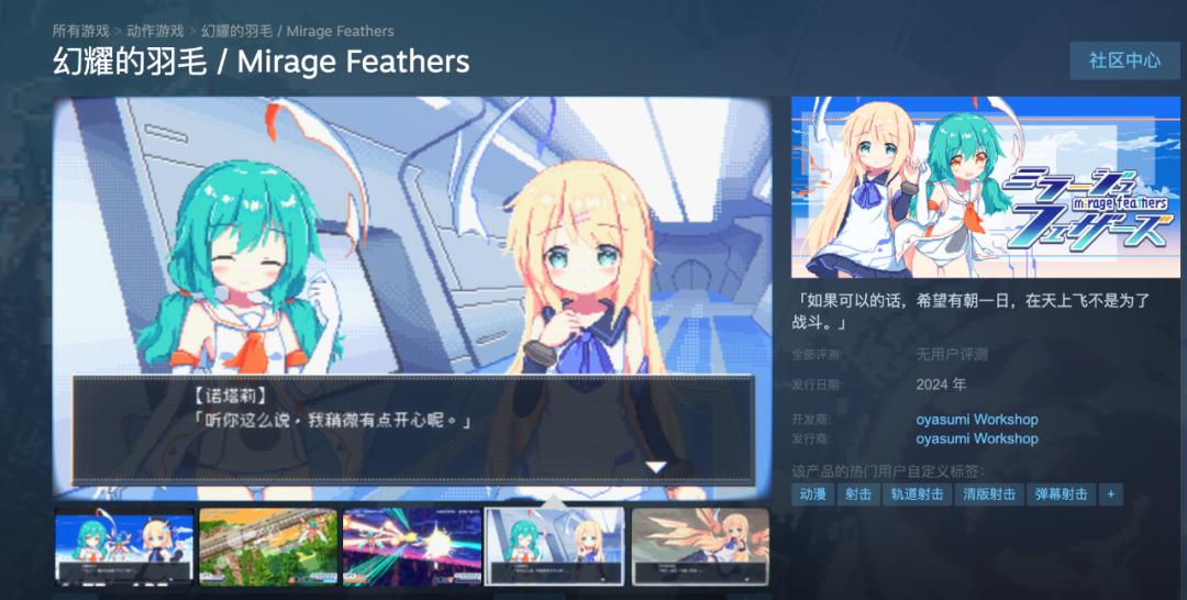 《幻耀的羽毛 / Mirage Feathers》已於Steam發佈試玩Demo下載,可以遊玩故事模式的三個關卡。