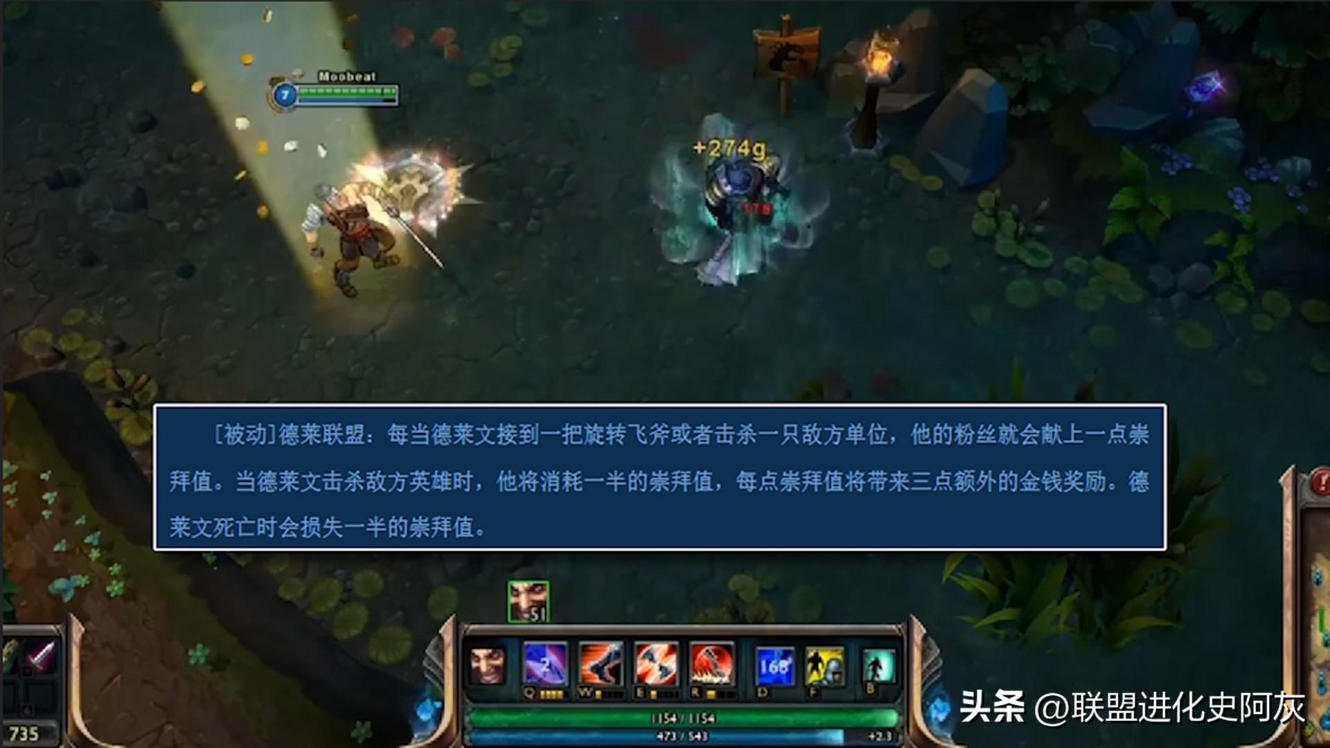 這兩兄弟曾經有一個共同點,攻擊都帶流血,諾手的被動出血想必大夥都很熟悉了,但德萊文的惡毒之刃卻鮮有人知,因爲存在的時間極短,效果是普攻暴擊或Q技能會附帶30+4*等級的流血傷害(物理),乍看之下數值一般,但它有一個很離譜的隱藏機制,別人的持續傷害技能是A一下刷新,而惡毒之刃是無限疊加的!一斧30、兩斧60……直至流乾爲止。