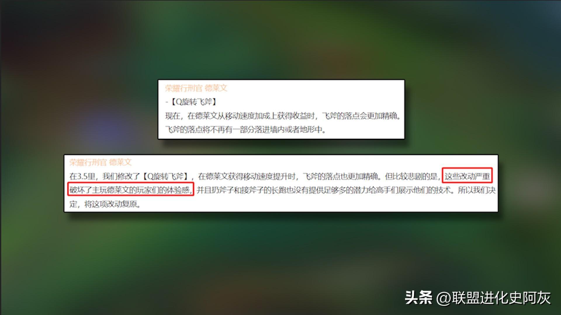 值得一提的是,設計師曾在3.5版本中,也優化過德萊文的Q,目的同樣是照顧新手,可殊不知這英雄全是絕活哥,結果被噴的狗血淋頭只好回調,可見操作手感的改變,對這種極度依賴,肌肉記憶的英雄來說有多難受。