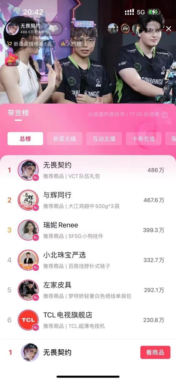 一款遊戲成了抖音直播帶貨榜第一,這事初看着實有那麼些離奇,但其實對了解《無畏契約》的玩家來說,卻也算是“意料之外,情理之中”的事。