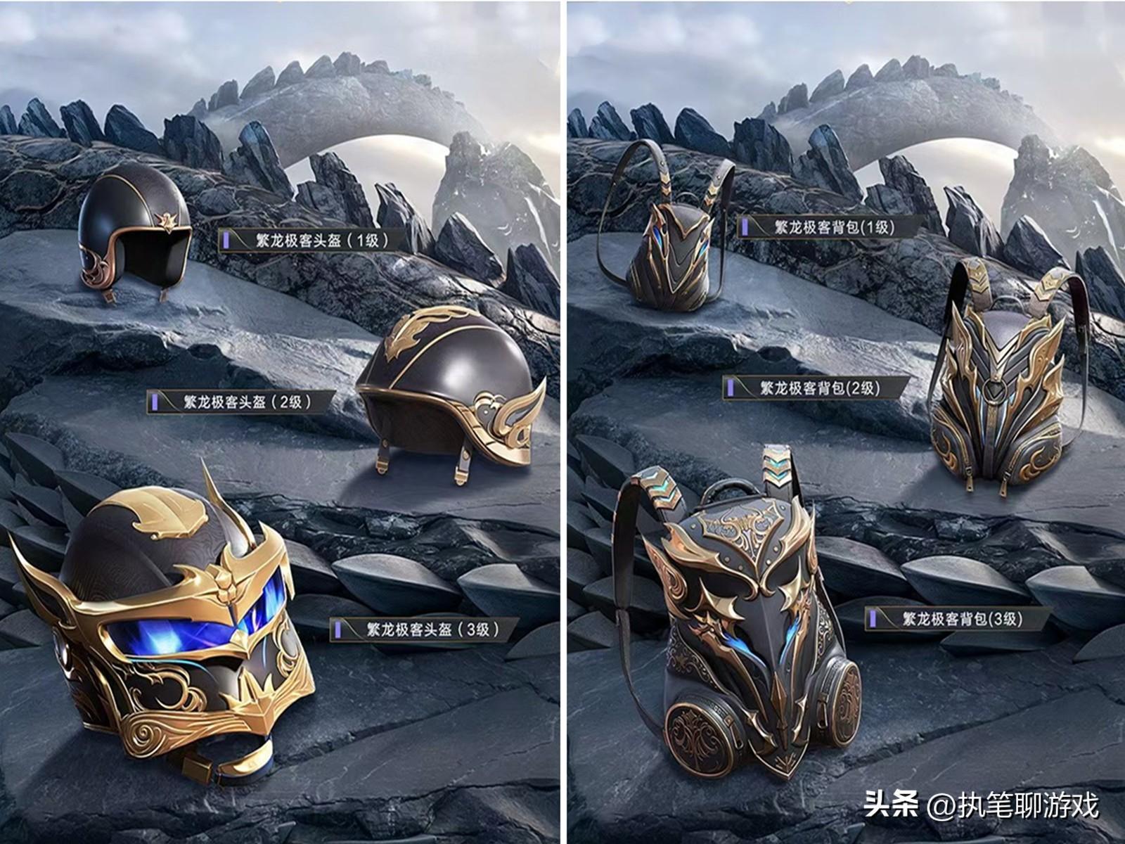 接下來我們一起來看頭盔、揹包,雖然光子還是重新建模,但是揹包的外觀中規中矩,頭盔當中僅有3級頭在特效加持下看起來挺炫酷,其他可以說是一無是處。