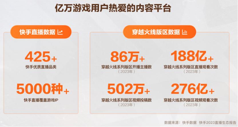 遊戲生態自然生長,疊加官方下場加催化劑,自然而然把大量喜歡看《王者榮耀》的老鐵聚集到了快手。2023全年快手《王者榮耀》區的各項數據因此達到新高:遊戲視頻播放次數達3500億,視頻上傳數達6900萬,開播主播數達265萬,直播觀看次數達542億。