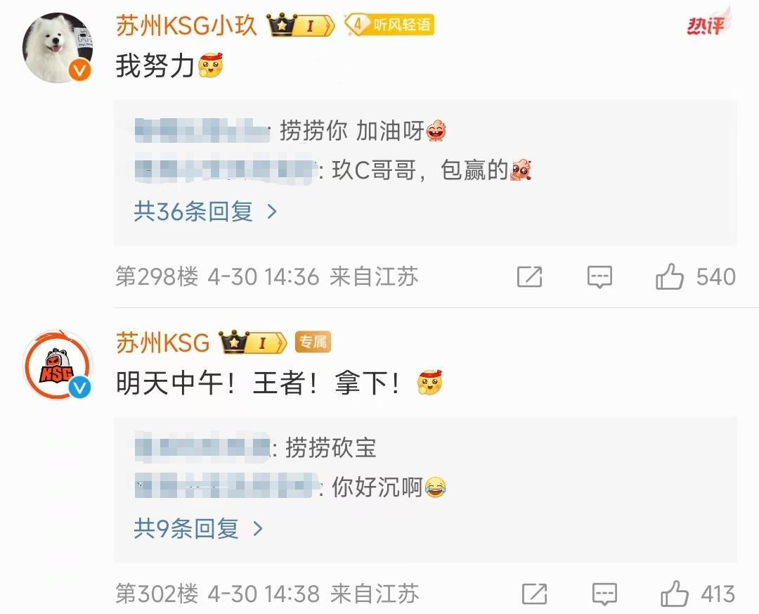 活動開始前,KSG選手去張國偉微博留言打氣,還引發了不少網友圍觀點贊。