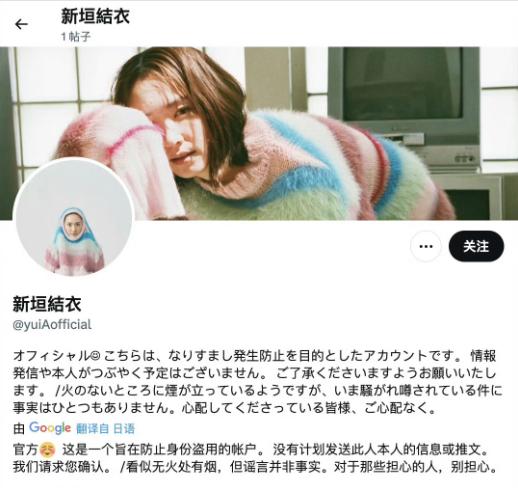 幾乎不在社交平臺冒泡的新垣結衣也更新了自己個人頁面的簡介“現在傳得沸沸揚揚的事沒有一個是事實,請大家不要擔心”。
