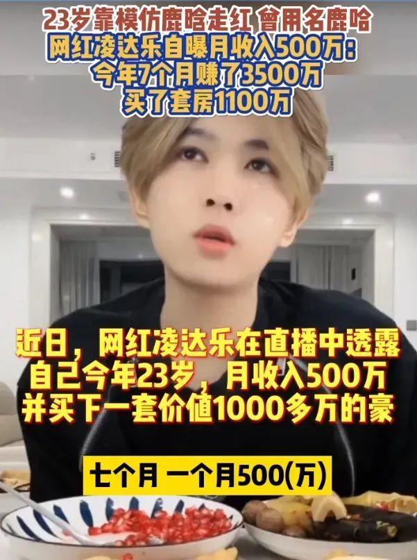 例如這位曾用名“鹿哈”的黃毛小夥,21歲還在電子廠打螺絲,23歲便能用兩個月收入購置千萬房產。考慮到其原型機鹿晗,在出演傳世科幻鉅作《上海堡壘》後愈發低調,現如今兩人的盈利能力孰高孰低,確實不好下判斷。