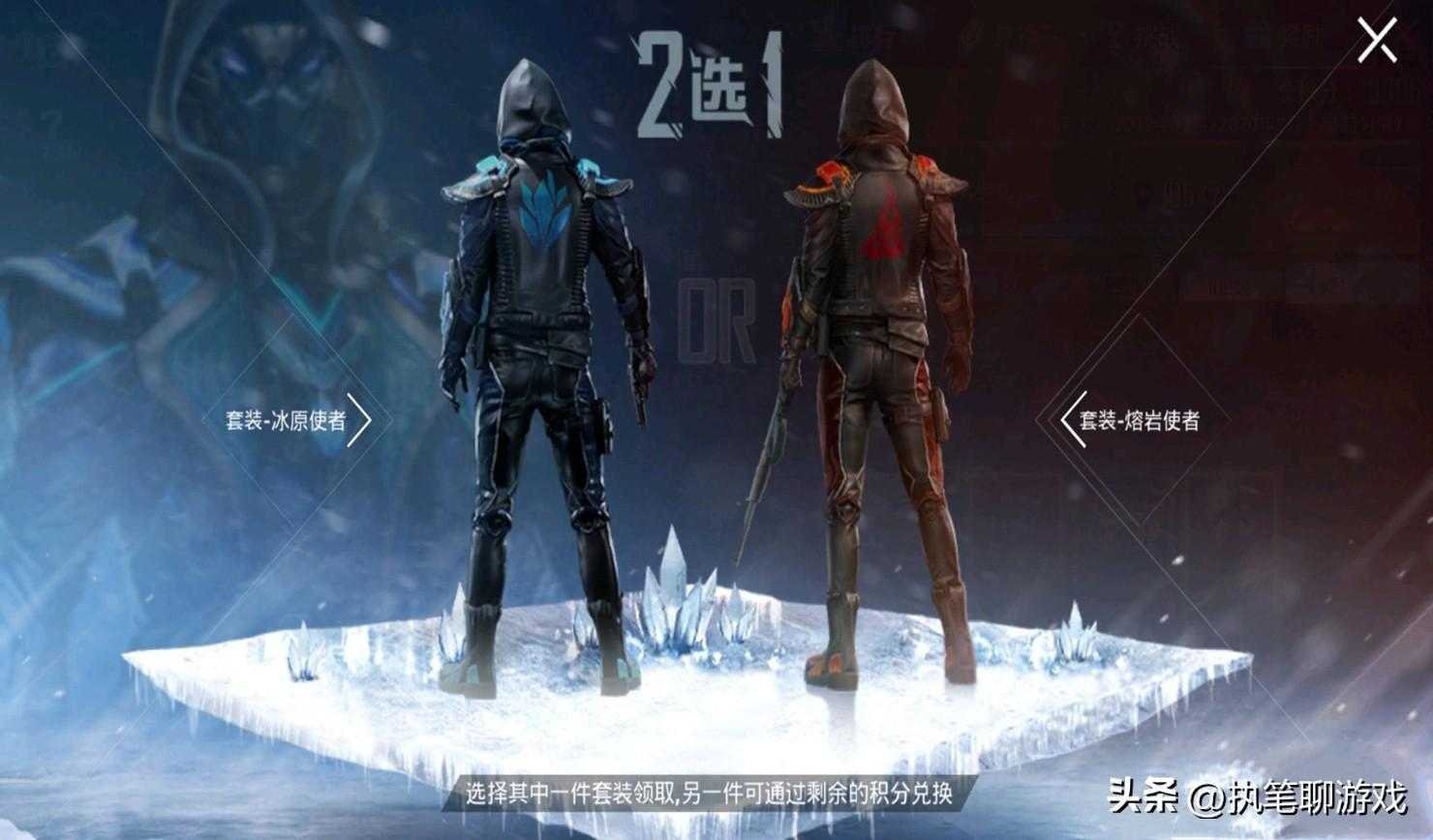 如圖所示,當年的SS5賽季手冊當中,100級獎勵還是“二選一”,除了等級獲得外,另外一套可以用積分兌換,它們的名字分別叫冰原使者、熔岩使者。