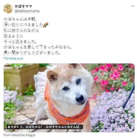經典表情包Doge原型柴犬「かぼす」的主人於今日(5月24日)7:40分通過推特發佈訃告稱,「かぼす」於今早離世,享年18歲。