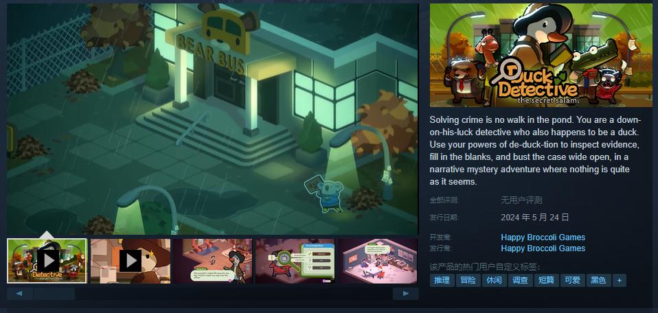 今天要介紹一款點擊式推理冒險遊戲——《鴨鴨偵探》,它融合了日本動畫系列《烈子》和經典推理遊戲《奧伯拉丁的迴歸》的一些元素。這讓我想起了小時候的一個叫做《鴨子偵探》的動畫片。