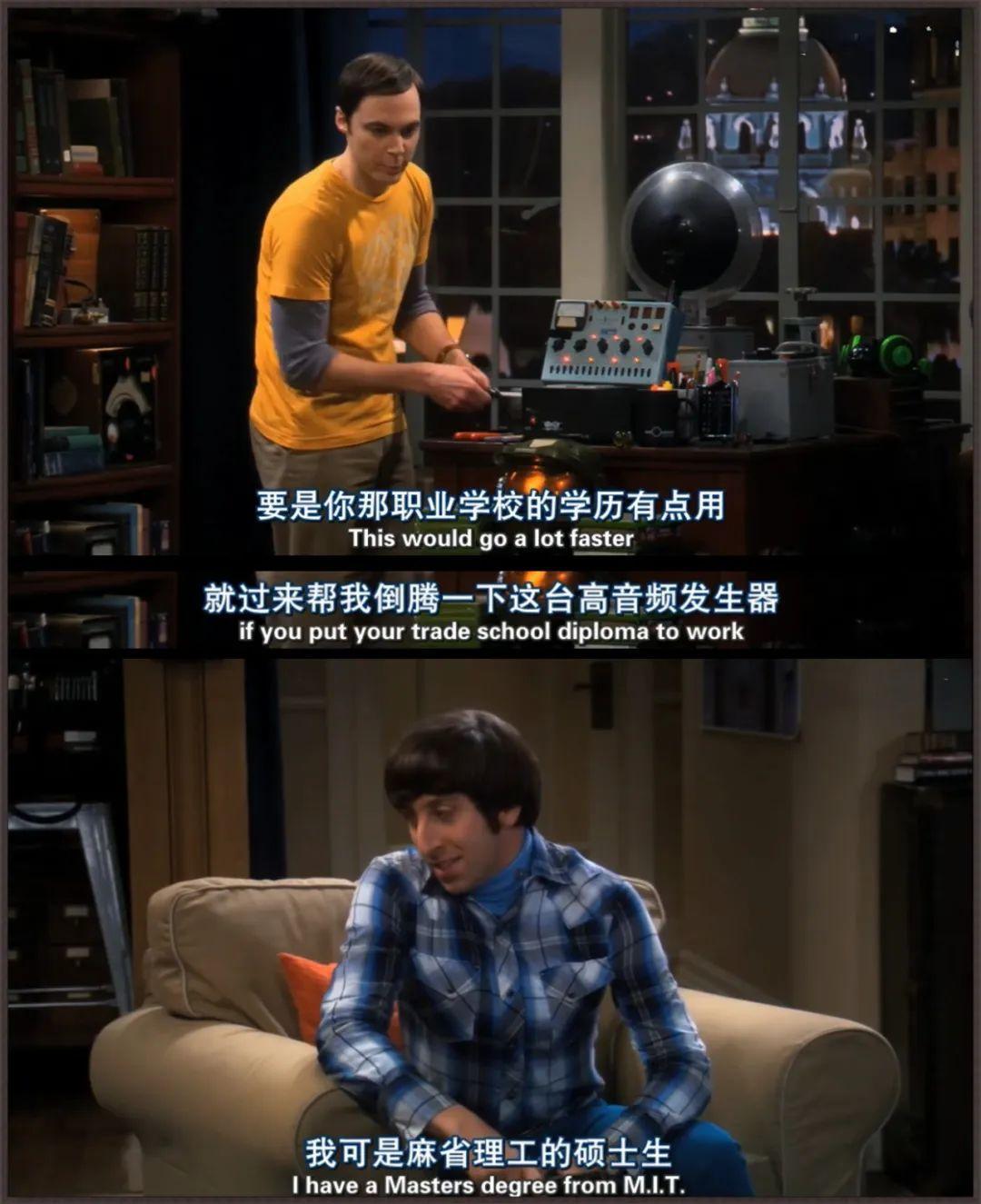 就像《生活大爆炸》裏的Howard,他雖然是麻省理工碩士,已經很牛逼了,但是混在一堆博士生裏經常被人整蠱。光是學歷歧視笑話,做成合集估計都能撐起好幾集的視頻內容來。