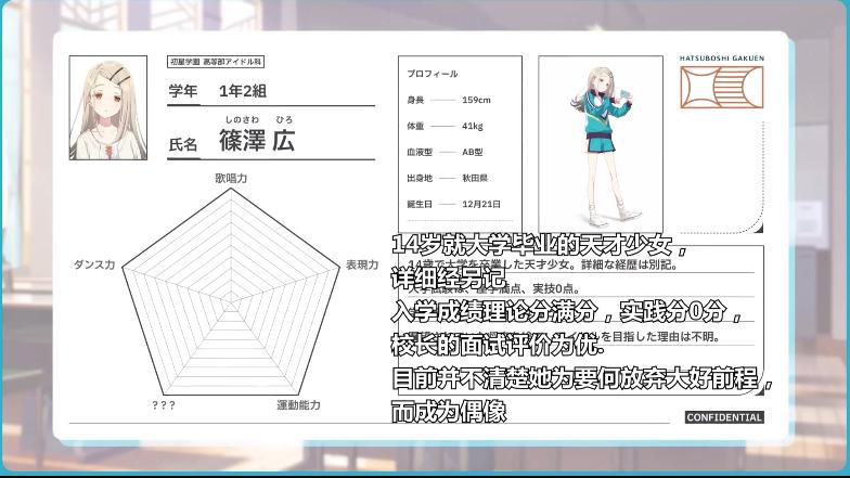 ③《學園偶像大師》裏有一個偶像,設定是14歲海外大學畢業的天才少女,厭倦了簡單乏味的日子,爲挑戰不擅長的領域而進入了初星學園。