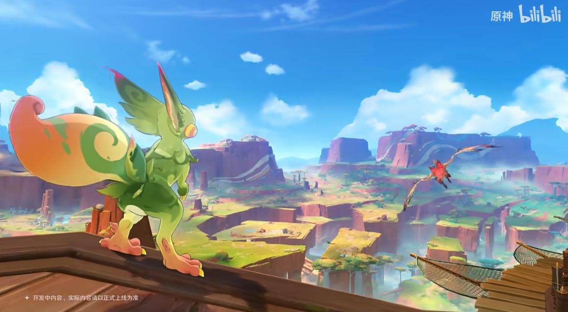 同時,《原神》還公佈了納塔前瞻短片“龍的漫遊”,短片中展示了許多納塔生物的習性以及納塔景觀。值得注意的是,預告中展示了不少以怪物爲主視角進行世界探索的鏡頭,怪物還能和玩法互動,或許在下個版本的納塔地圖中,《原神》可能將上線類似帕魯的玩法。