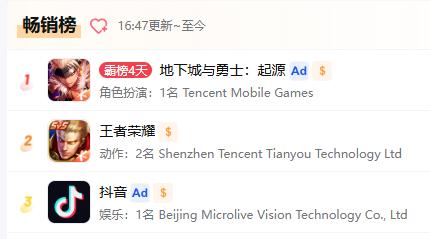 根據各大數據網站,DNF手遊在21日上線幾個小時後,就登上了暢銷榜第一,此後一直霸榜。這背後當然有騰訊飽和式營銷的功勞,但並不是所有遊戲在有頭部推廣的情況下,都能好幾天力壓王者榮耀和抖音的,至少此前被賦予衆望的《元夢之星》就沒做到。