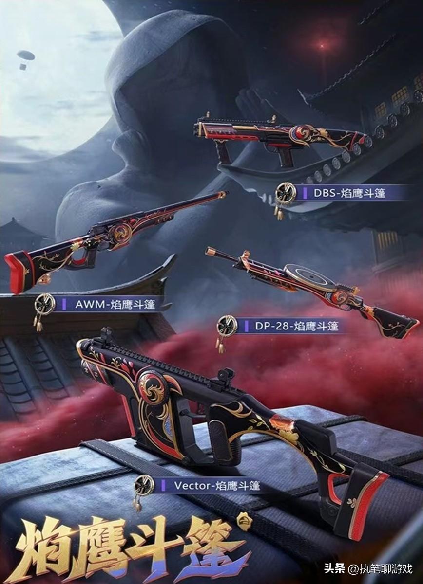 首先是槍皮,分別是AWM、DBS、DP28、維克托、平底鍋,顏色以及黑色、金色、紅色爲主,採用經典顏色搭配,個人覺得還算是馬馬虎虎吧,談不上多麼好看,但又說不上醜。