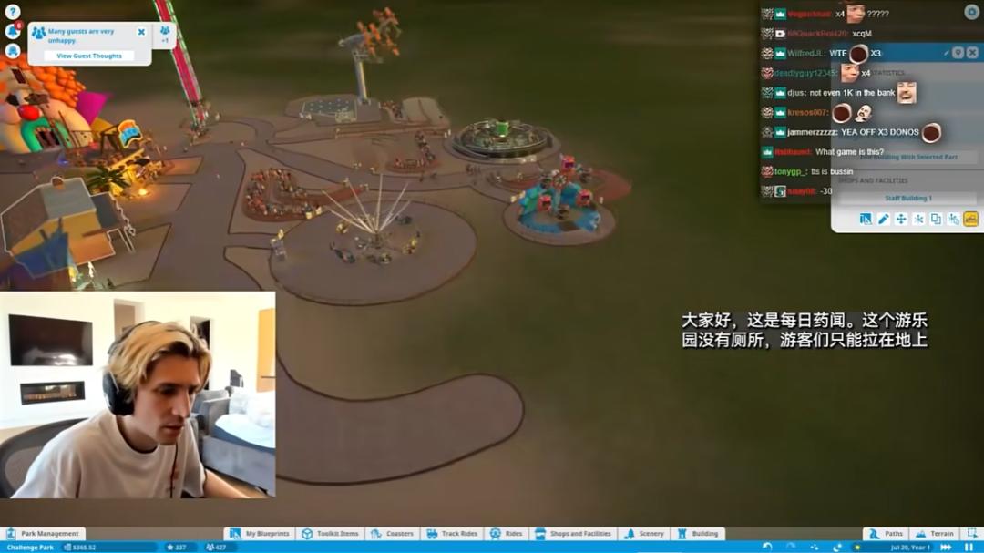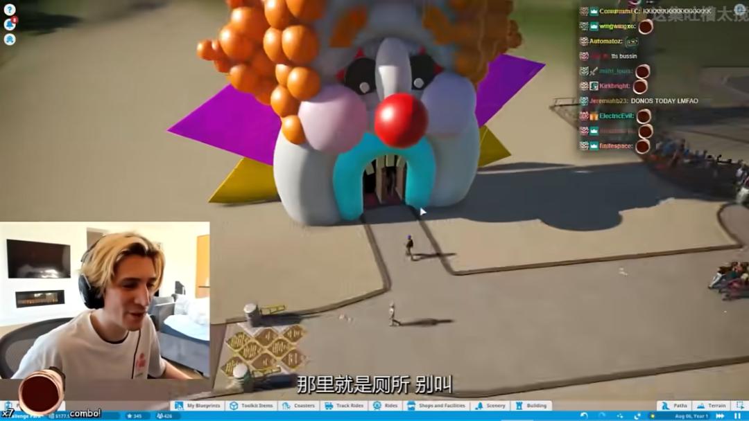 就比如知名的油管主播XQC之前玩這個遊戲,因爲把廁所的外觀修成了小丑,所以許多直播的觀衆都開始惡搞他沒修廁所。