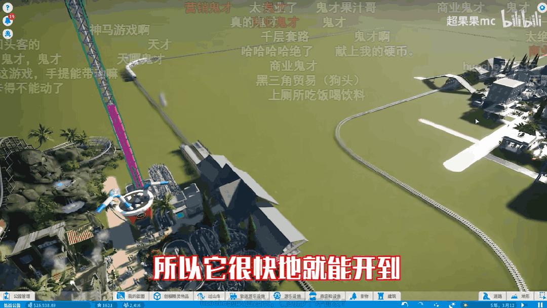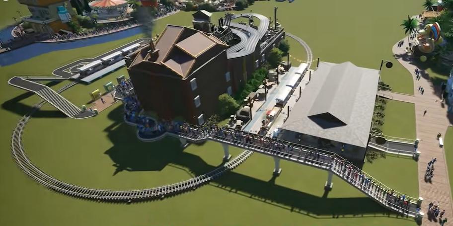 他開創了火車掙錢流的玩法:就是把遊戲園區裏最著名的幾個大型遊樂項目移到很遠的地方,然後建了一個火車站用來運送遊客。