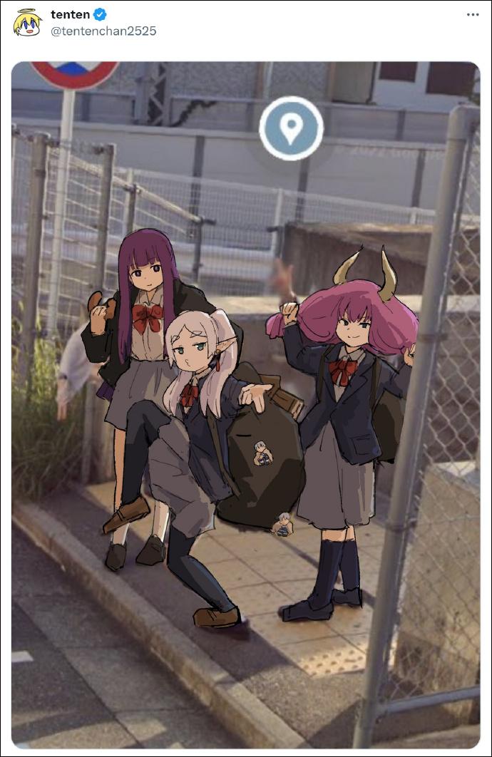 二創的素材多種多樣,但因爲街景模版本身透出的活力,與很多作品描繪的,充滿活力的高中日常不謀而合,所以這些二次加工的meme,有不少都讓人直呼原作。