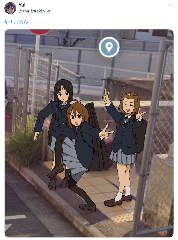 最早的一代“少女搖滾”——《輕音少女》,自然也難擋這個meme的魅力,很快也出現在了推特串下。