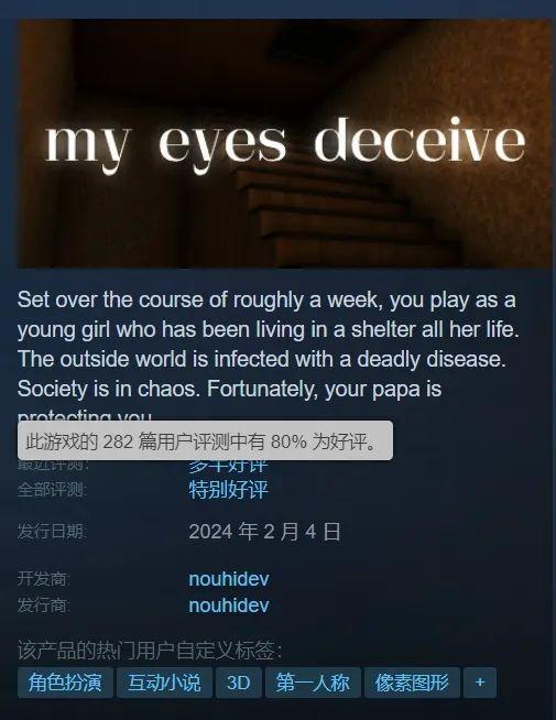 有些遊戲,可能賣不出去幾份,但註定要在網上掀起波瀾。《My Eyes Deceive》就是這樣的作品,遊戲的名字,翻譯過來是:“我的眼睛會撒謊”。