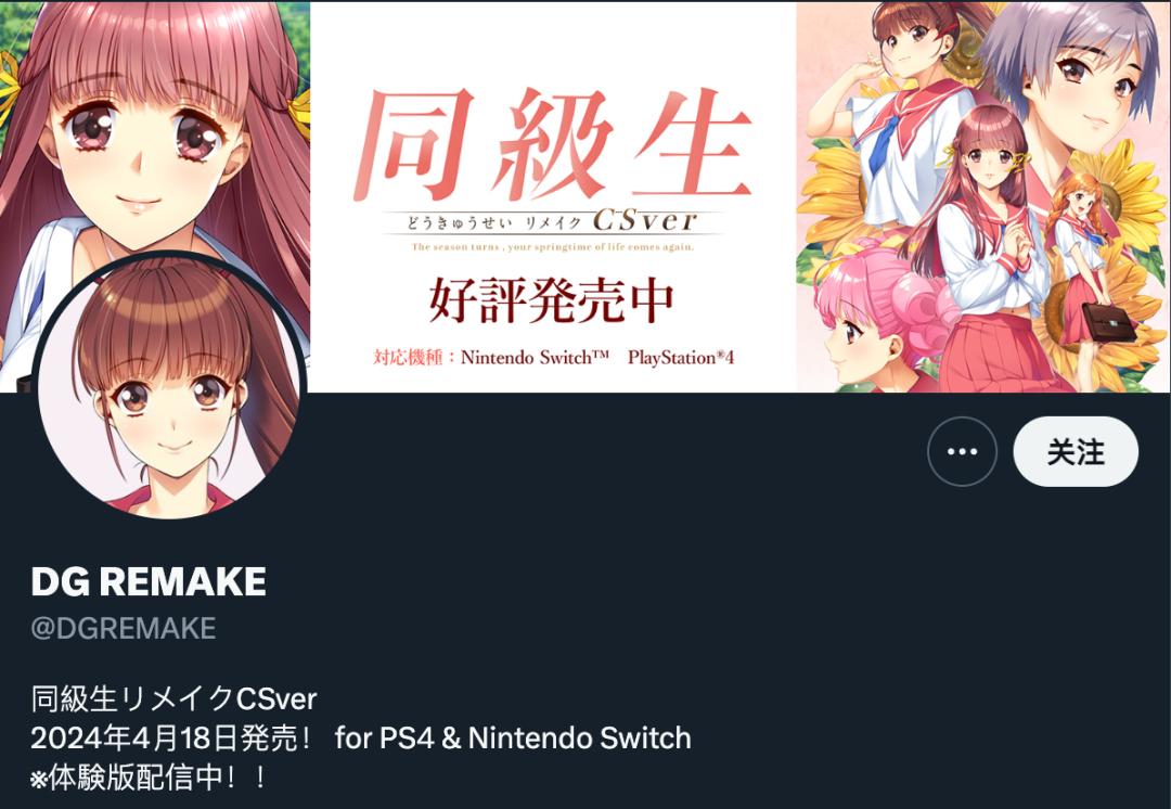 順帶一提,《同級生》重製版的推特官號叫DG REMAKE,DG=DMM GAMES,可能因爲遊戲要上NS、PS4的全年齡平臺,所以沒用FANZA名字。
