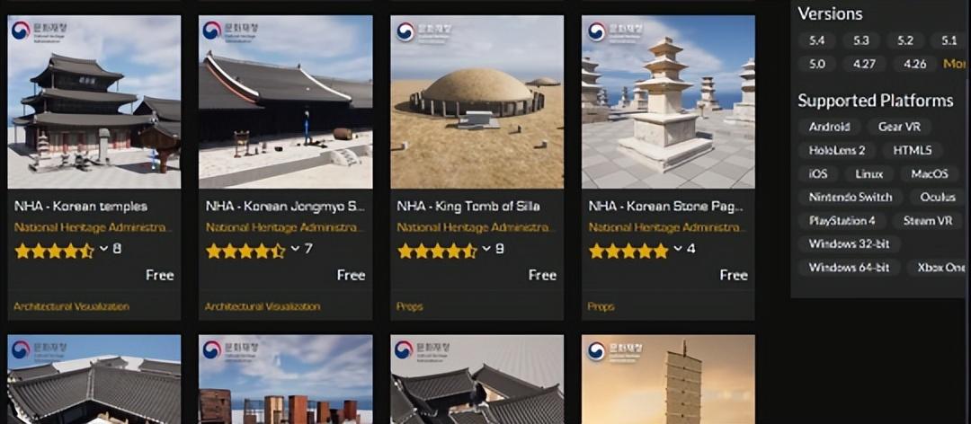 而從去年年底開始,韓國文物局就一直在往虛幻引擎的官方商店裏,大力輸出韓國的建築模型,關鍵還允許開發者免費使用。