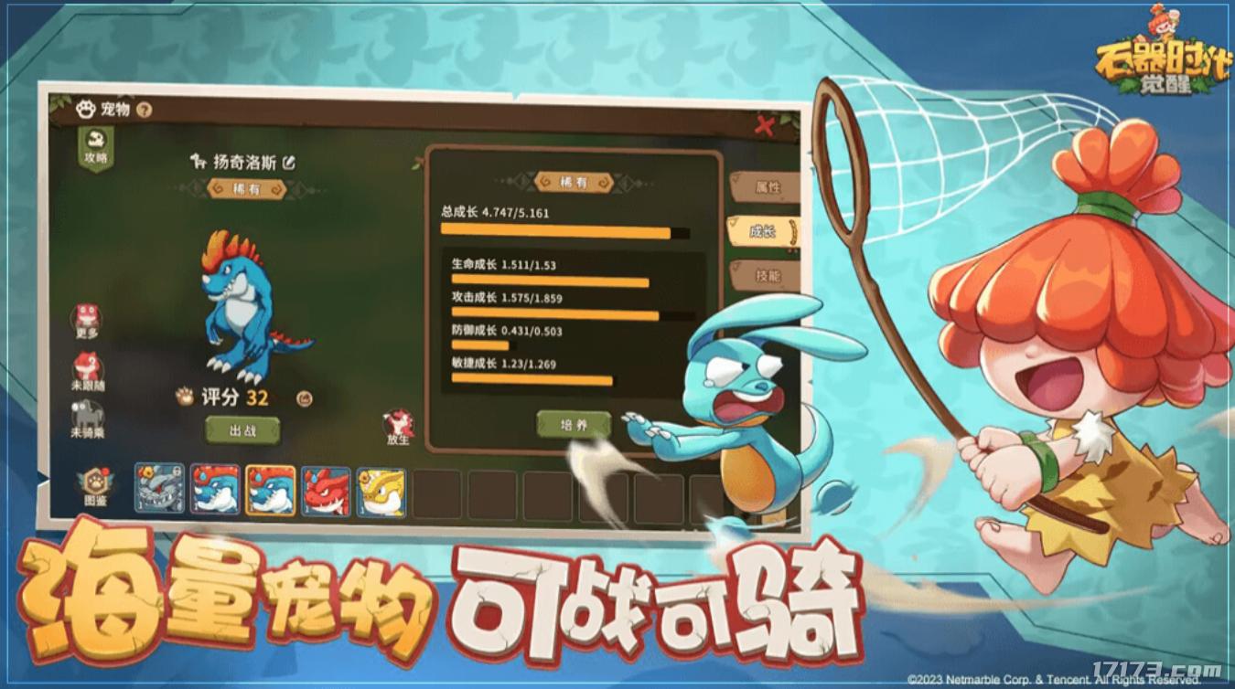 此外,遊戲中還擁有超過400種史前萌寵等玩家來收集。這些萌寵分佈在不同的地區,有不同的自然屬性和品質,你可以通過抓捕、孵化、加工、置換、任務或者交易等多樣化的的方式得到它們。