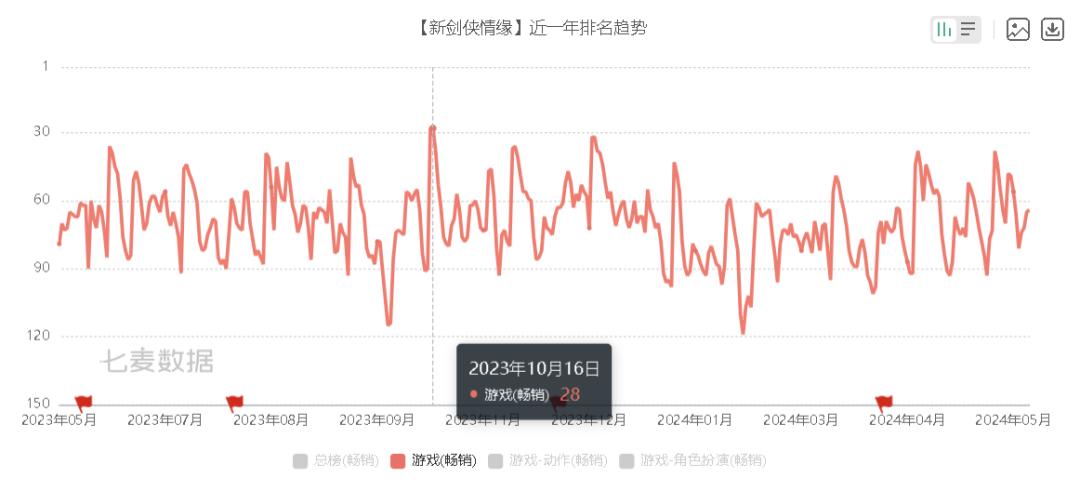 單機和端遊的成績自然不必多說,在入局手遊後,它也展現出了不小的威力:2016年《劍手》上線後,遊戲當月流水就突破5億、長期佔據暢銷榜Top 10,直接爲西山居拿到了手遊時代的第一張門票;如今過了這麼多年,它在暢銷榜的排名依然能穩定於三十多名左右,這放在今天也是很難得的成績。
