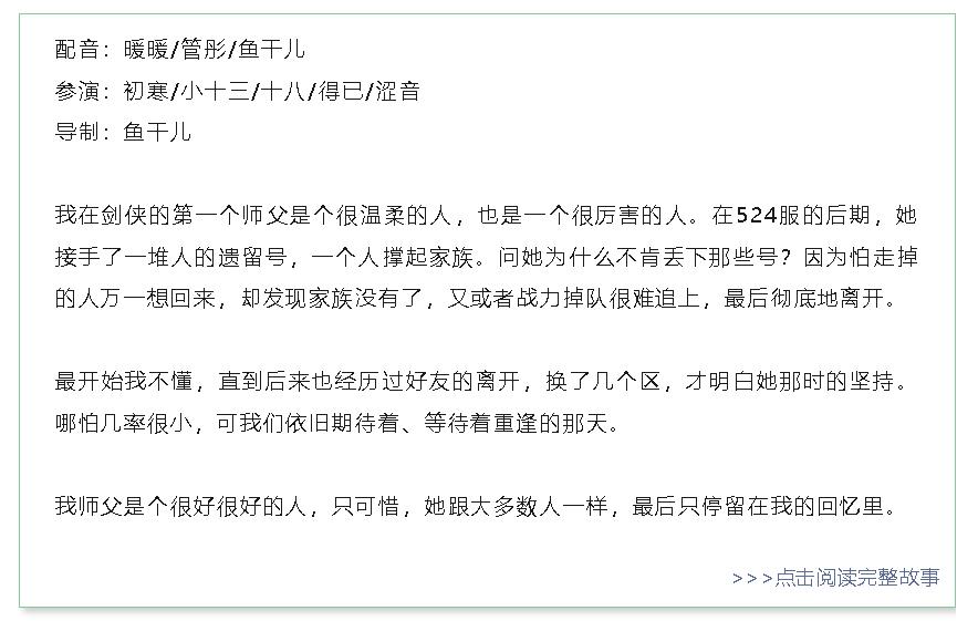 其次,遊戲就像音樂一樣,能牽動人的回憶,讓老玩家們想起自己的青春和故事。《劍手》就承載着很多這樣的故事,甚至讓許多人因此有了非常深的緣分。在微信公衆號上,官方一直到現在,還在持續更新玩家之間的故事——有人懷念以前的戰友,有人和老友久別重逢,也有人跨越四千多公里和自己的情緣奔現,相處三年後領證……