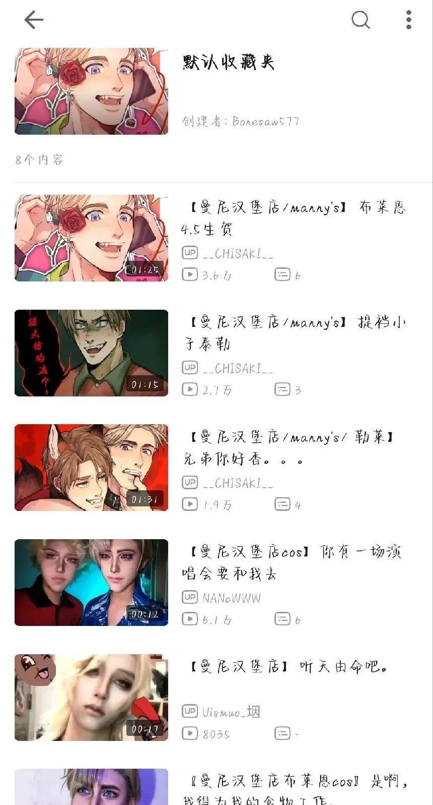 製作人骨頭魚的B站收藏夾