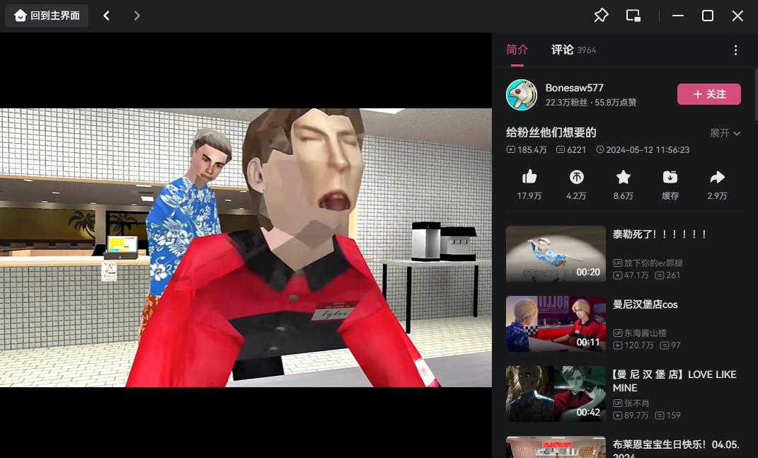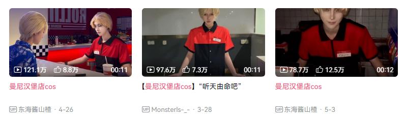 你可能不相信,如今國內同人文化最活躍的社交平臺LOFTER上,《曼尼漢堡店》的熱度其實一直高居不下,B站、抖音上一些優質的Cos視頻更是播放破百萬。