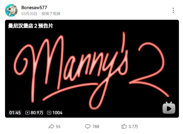 製作者本人也十分敏銳,他察覺到這股來自同人作品,甚至是同人CP的詭異熱度,在3月13日火速入駐B站後,在3月20日發佈了《曼尼漢堡店》第二部的預告。
