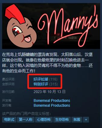 直到我打開了《曼尼漢堡店》的Steam界面——好評居然只有三百多個,實際上根本就沒賣出去多少份!