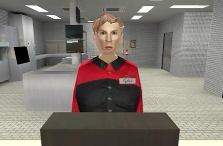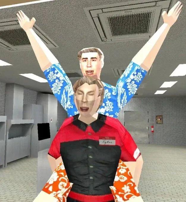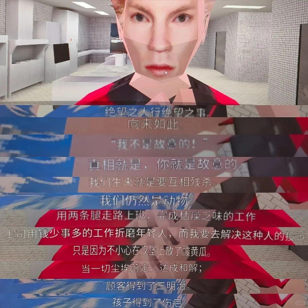 一番順藤摸瓜,我找到了原作,這個幾何體建模的人物出自一款發行於去年(2023年)10月份的生存恐怖類遊戲——《曼尼漢堡店》。