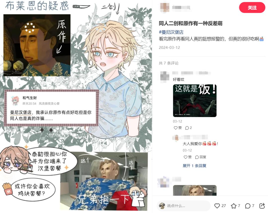 就像《曼尼漢堡店》一樣,最開始它的知名度並不高,現在能有這麼火很大程度上也是仰賴同人作品擴大影響力,吸納了更多圈外人源源不斷地進入。