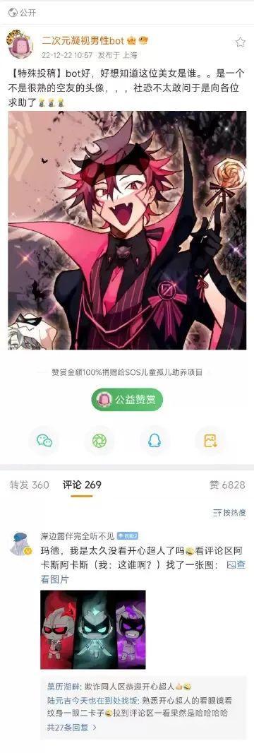 之後更是成爲兩位主角的頭號CP粉,不但親口承認兩者存在戀愛關係,爲各位CP粉製作了CP向的視頻,還頻繁活躍在各個平臺爲同人二創點贊評論。