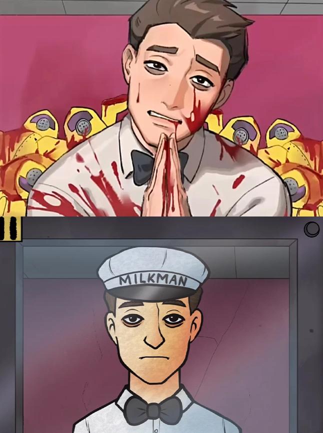 《那不是我的鄰居》中的送奶工,上同人,下原作
