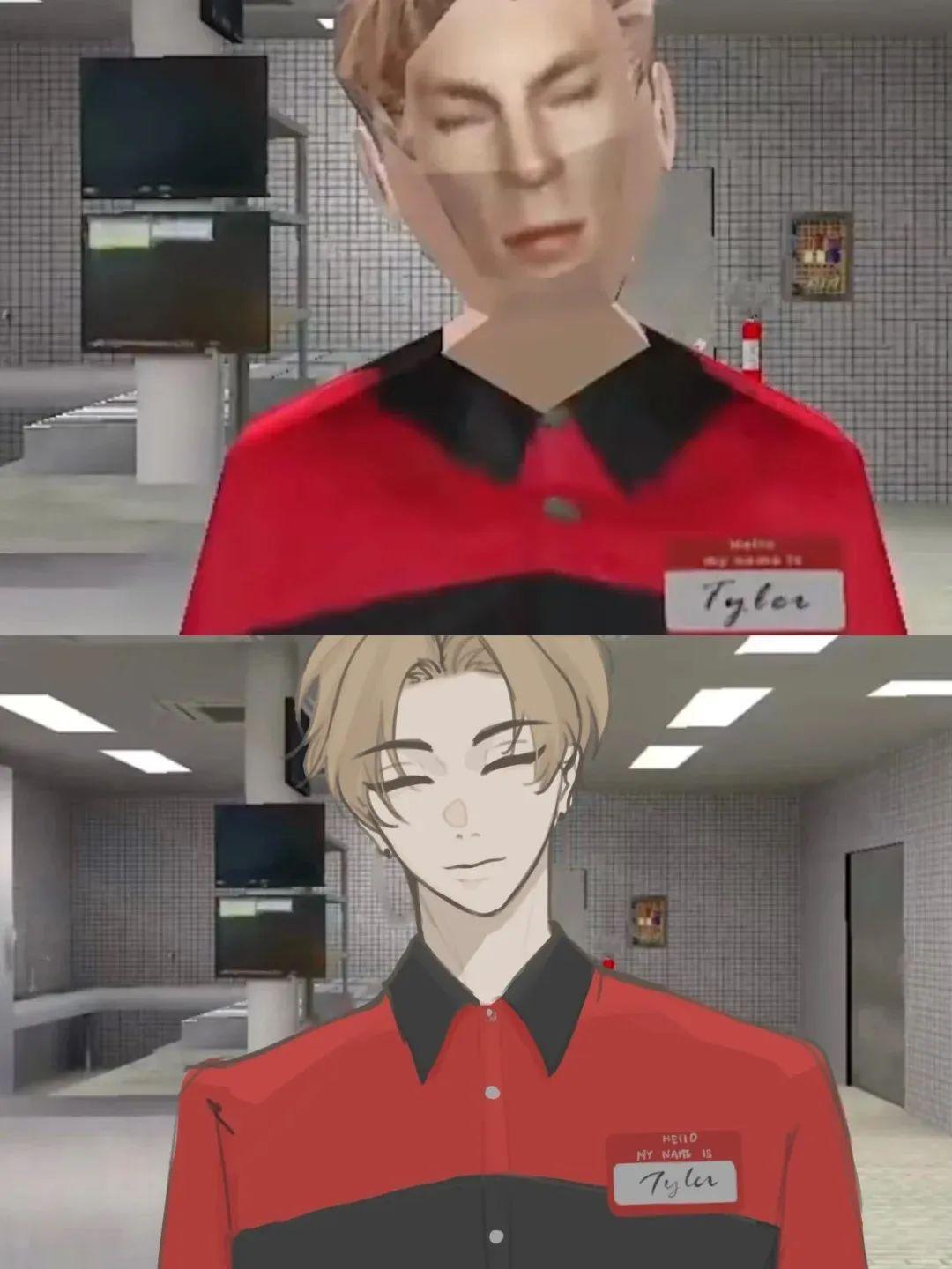 所以在各個社交媒體平臺高強度衝浪之後,我將目光投向了另一個可能讓《曼尼漢堡店》爆火的因素,遊戲中兩位角色——泰勒與布萊恩的CP。