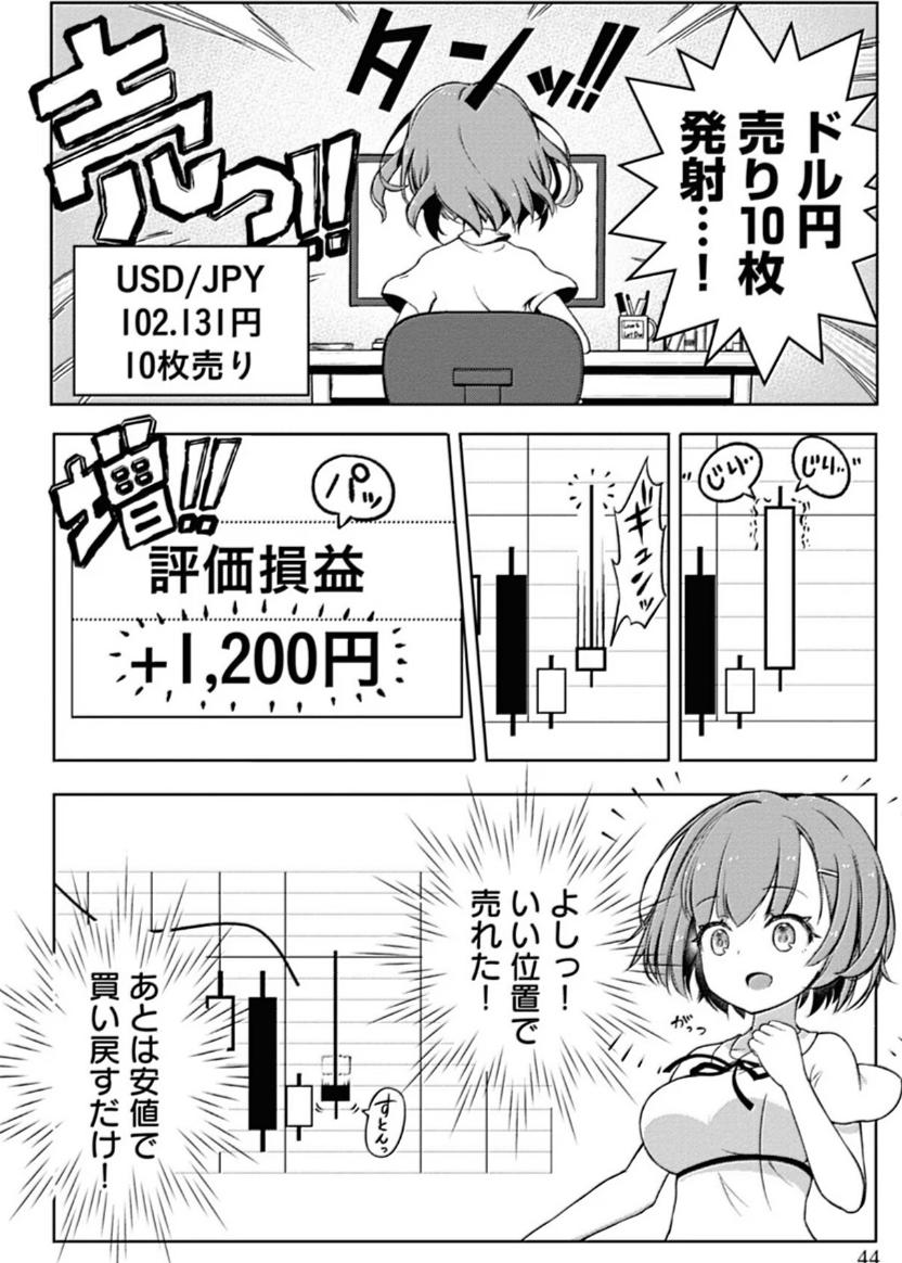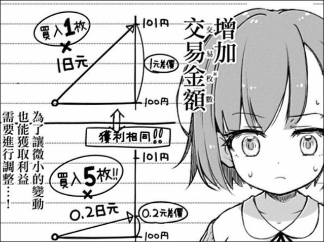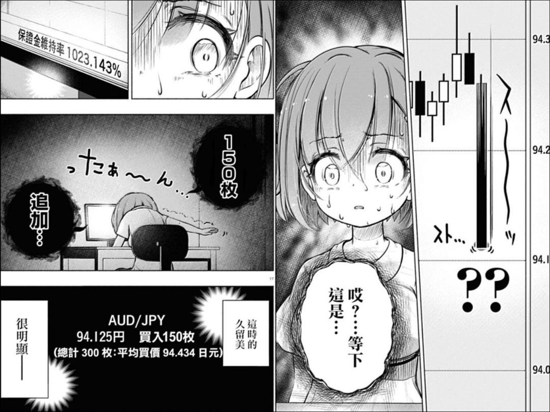 但很快從引入第二個角色“小金萌智子”開始,故事進入到圍繞“澳元”展開的外匯活動。萌智子向久留美推薦了波動較大的澳元,久留美聽從建議,並作出了做多的決定。