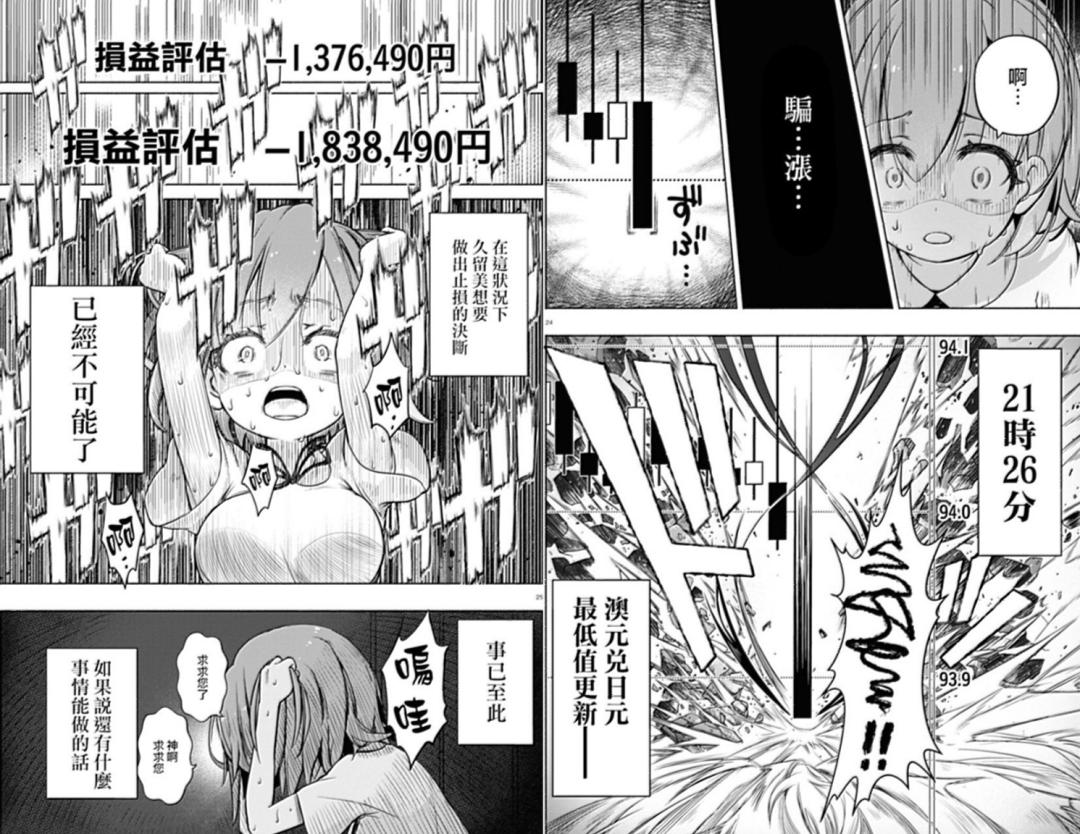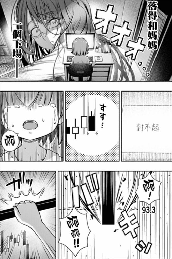 在自己全部的50萬日元虧損殆盡,即將因爲平臺政策強制止損時,她想到偷偷挪用父親的存款,用300萬繼續加倉,但日元還是一路走跌,久留美最後心如死灰,關上了自己的電腦……