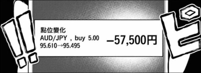 久留美利用槓桿,將自己的資產放大,並選擇做多,但之後澳元一路下跌,她的收益從開始的賺10萬日元,僅用一個小時就變成了虧損5萬日元。