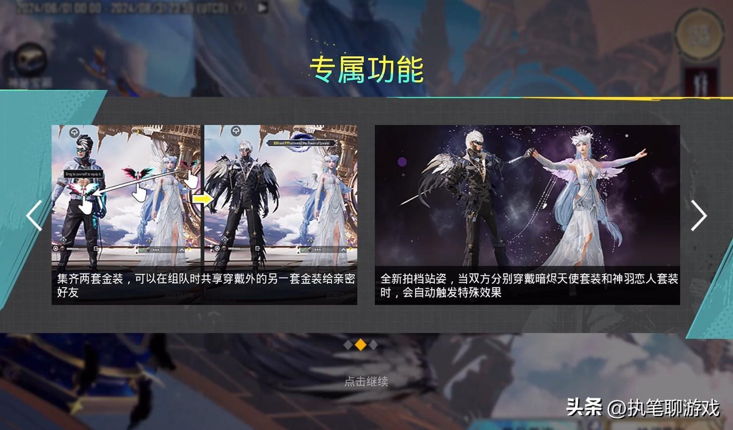 當看到遊戲內時裝的具體表現後,天哥只能說:無論是男款的暗燼天使,還是女款的神羽戀人,這纔是“情侶套裝”應該有的樣子!