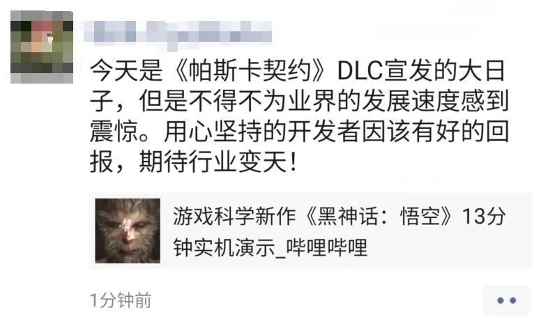 有人可能會質疑,那他爲什麼不做成《黑神話:悟空》?但事實上,《黑神話:悟空》首曝時,老楊可能是我朋友圈裏最激動的人之一。因爲他認爲這證明了他前進的方向是對的,視頻的爆火也給了他很大的信心和膽量,去做更偏向單主機體驗的項目。