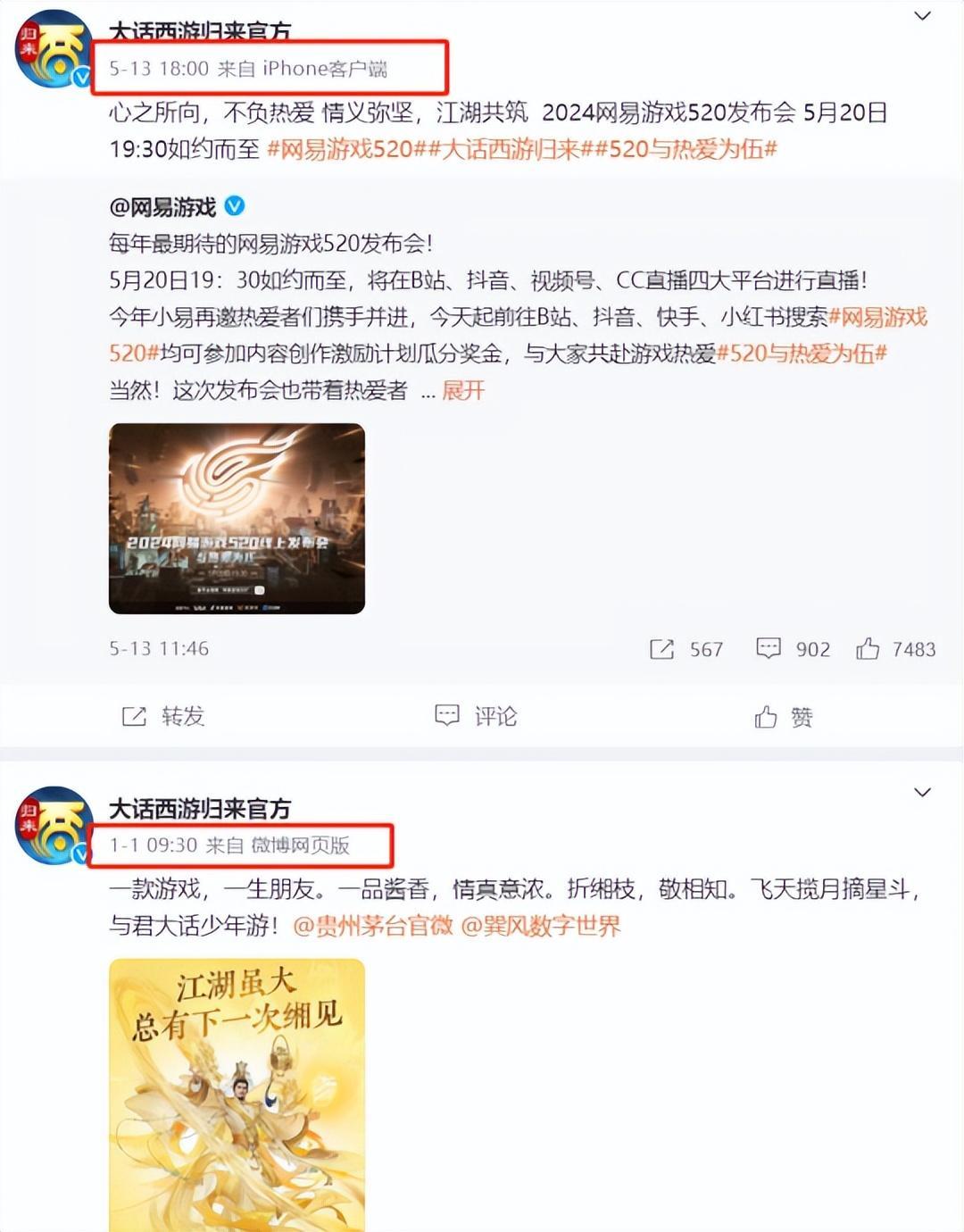 順帶一提,這遊戲的官方微博也在今年1月1日宣佈跟茅臺聯動後,也是“查無此人”了小半年,直至網易520發佈會纔出來小小地露了一把臉,咱也不知道發生了啥事。