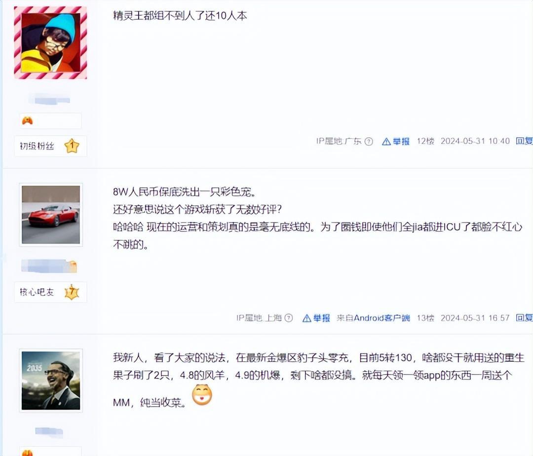 對此,製作人的解釋爲遊戲主打長線運營,節奏比較慢熱,適合大齡玩家輕鬆掛機刷圖,重溫當年抓寵的快樂。但事實上,這遊戲的戰力養成系統崩壞得嚴重,氪佬用錢砸出來的寵物能輕鬆碾壓平民。