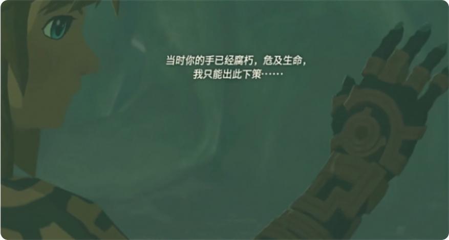 於是給這一作的林克添加了個“究極手”的設定,因爲故事開篇中林克與公主塞爾達探索海拉魯地下時碰到最終boss蓋儂復活,爲了保護塞爾達林克的右手被瘴氣所侵蝕,後面是海拉魯王國第一任國王勞魯的靈體重塑了林克的右手。