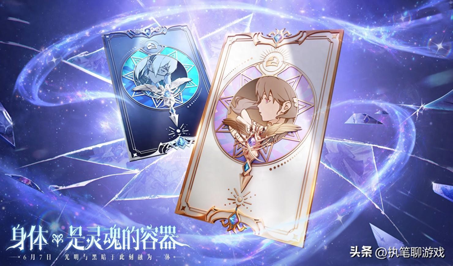 在此次光子官宣新紅裝的“懸念海報”時,又公佈了一組特意標記的文案,其中被標記的關鍵詞尤爲重要,它們分別是:黑暗與光明、融爲一體、神明少女、靈魂的容器。