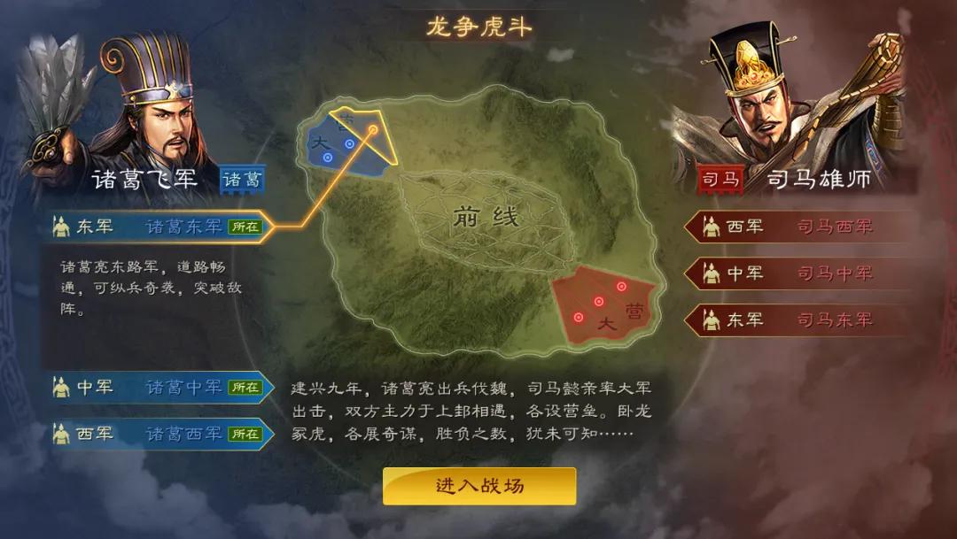 比如《赤壁之戰》的水戰火攻,《奇門八陣》的八陣圖、觀星臺,以及《潼關之戰》的冰雪戰場和三國異族玩法等等。可以說,劇本既是滿足不同玩家需求的玩法擴充,又是一次三國曆史的還原。